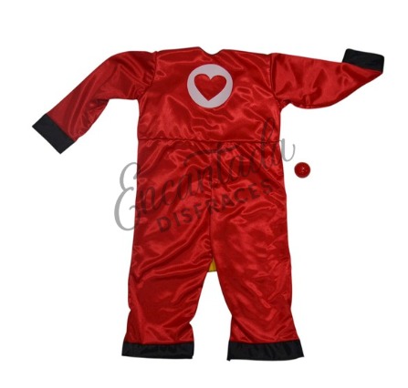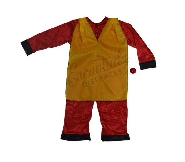 El conjunto incluye un enterito rojo con detalles negros, chaleco amarillo desmontable y el clásico botón rojo, inspirado en el querido personaje infantil. Es cómodo, colorido y perfecto para los más pequeños.