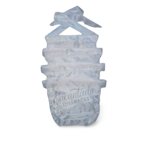 Incluye 4 delantales color blanco confeccionados en tela satinada brillante, suaves, livianos y fáciles de atar.